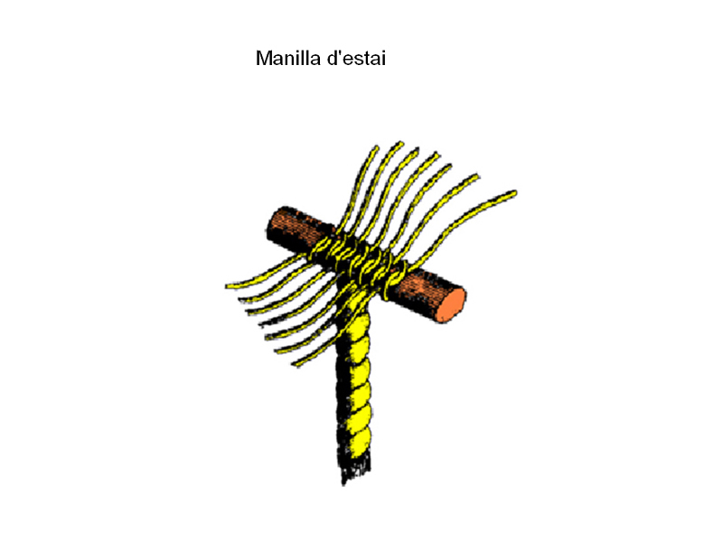 Per mitjà de la maça se li va embullant al cap una piola o meollar, de manera que quedin les seves voltes molt juntes i tirants.