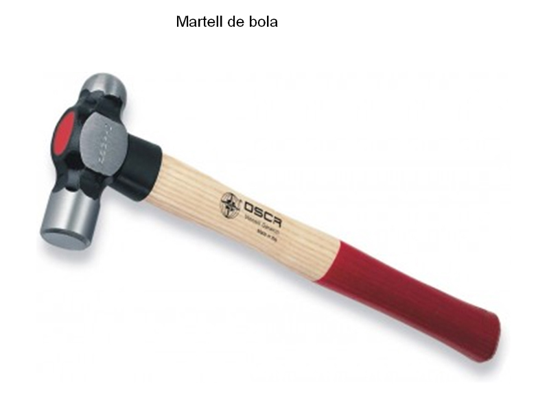 Es una maça que té una canal en la part oposada al mànec perquè s'adapti bé al cap.