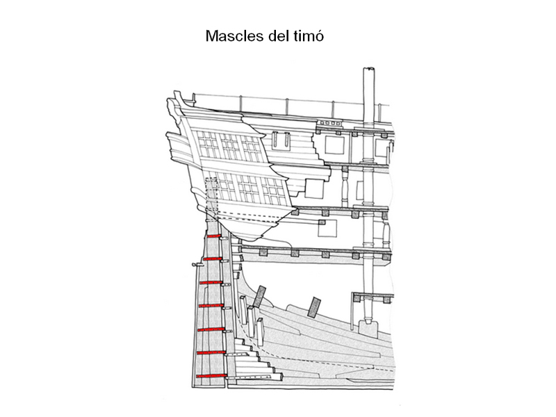 Peces de fusta acanalades a cada banda, que encaixen en la falca d'una embarcació.