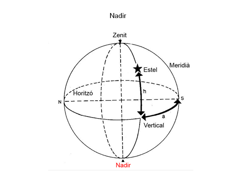 També s'utilitza en termes solars com "el nadir del Assolellat", que és l'òrbita més baixa respecte a l'horitzó que segueix el Sol a les 12:00 al hivern.