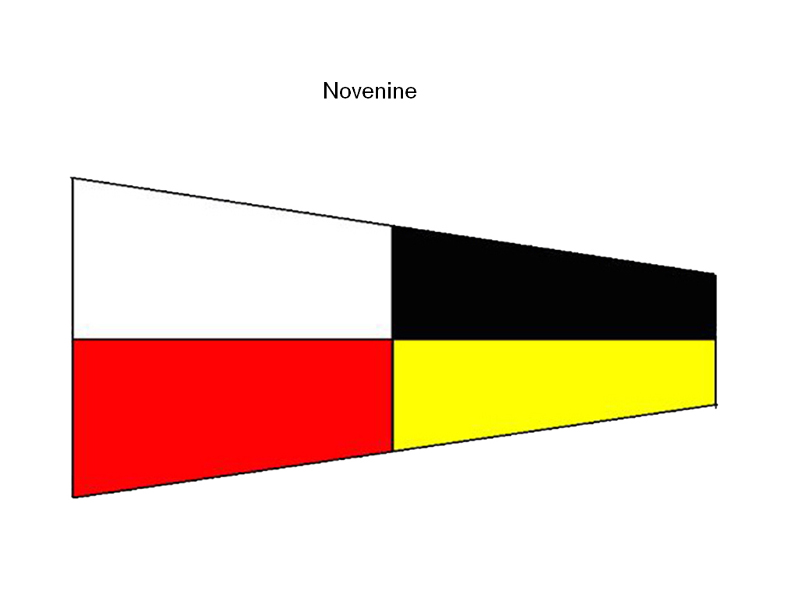 Catorzena bandera del Codi Internacional de Senyals, coneguda sota el nom de "NOVEMBRE", és escacada, a quadres blancs i blaus.