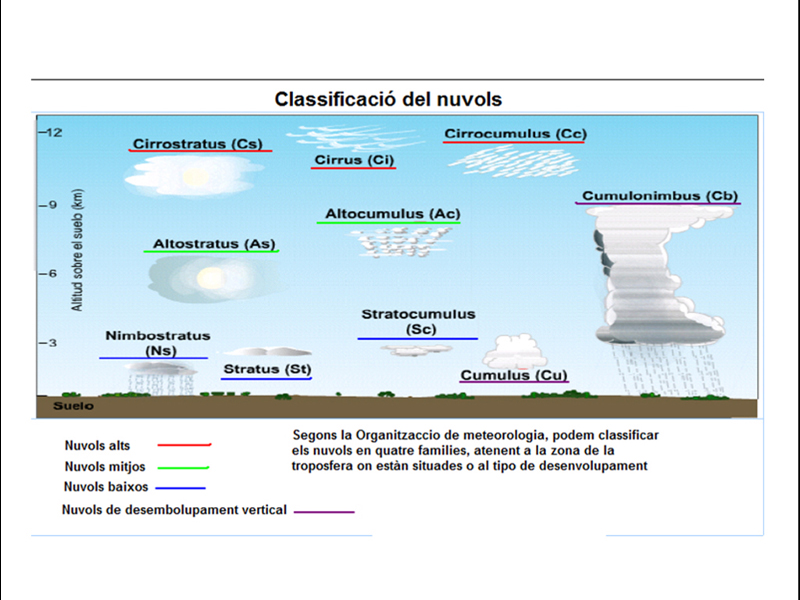 Núvols que podem trobar des del terra, fins a més de 6.000 metres: Cúmuls (Cu) i Cumulonimbus (Cb).