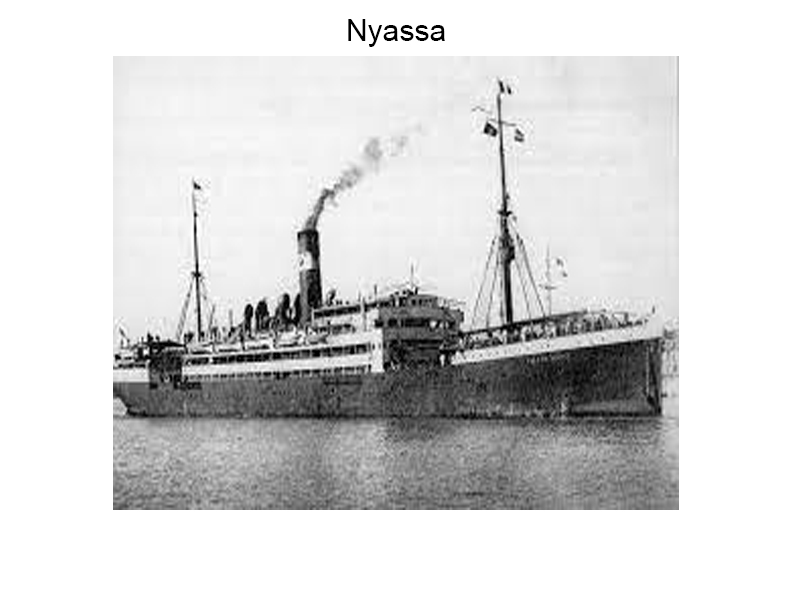 El Nyassa fou un vaixell transatlàntic portuguès (originàriament alemany), amb 8.980 tones de desplaçament, 120 m d'eslora i 14 nusos de velocitat màxima; havia estat concebut per transportar 108 passatgers de primera classe, 106 de segona i 1828 de tercera. Fou construït el 1906 i avarat amb el nom de Bülow per la naviliera alemanya Norddeutscher Lloyd a Bremen. Sorprès en alta mar pel començament de la Primera Guerra Mundial, el 1914, es refugià al port de Lisboa. El 1916 fou requisat pel govern portuguès i anomenat Trás-os-Montes. El 1925 l'empresa privada Companhia Nacional de Navegação el compra al govern i el rebateja Nyassa, nom que servarà fins al seu desballestament el 1951.